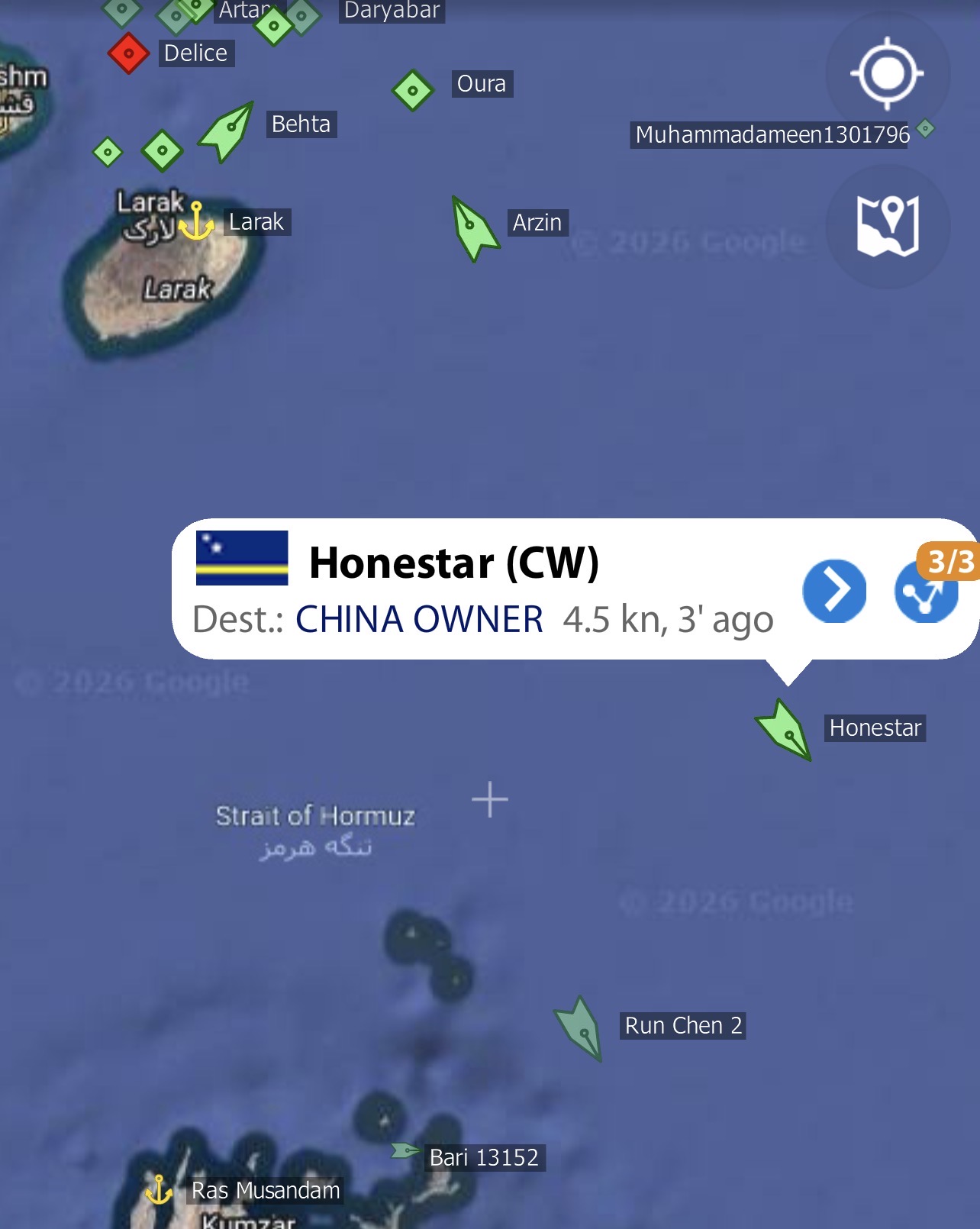 >>530394878only two ships crossing Hormuz, both for China>Honestar>Run Chén 2