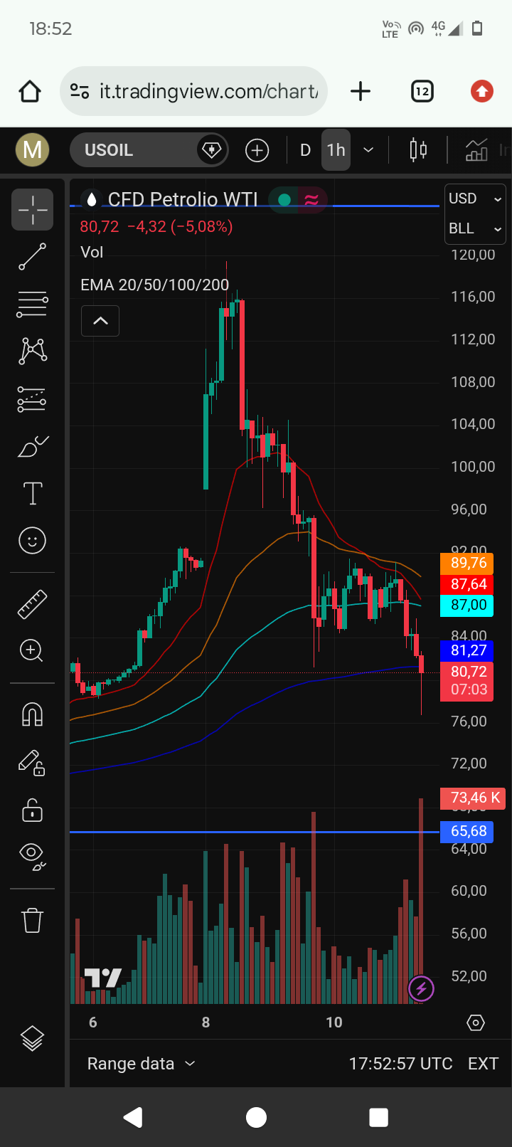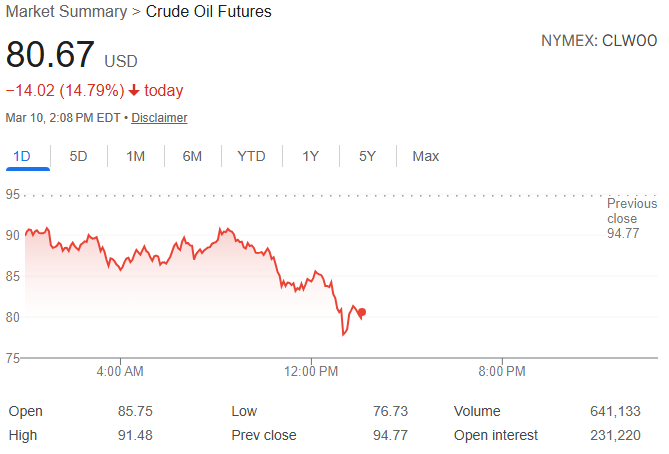 >Crude oil tumbles as low as $76