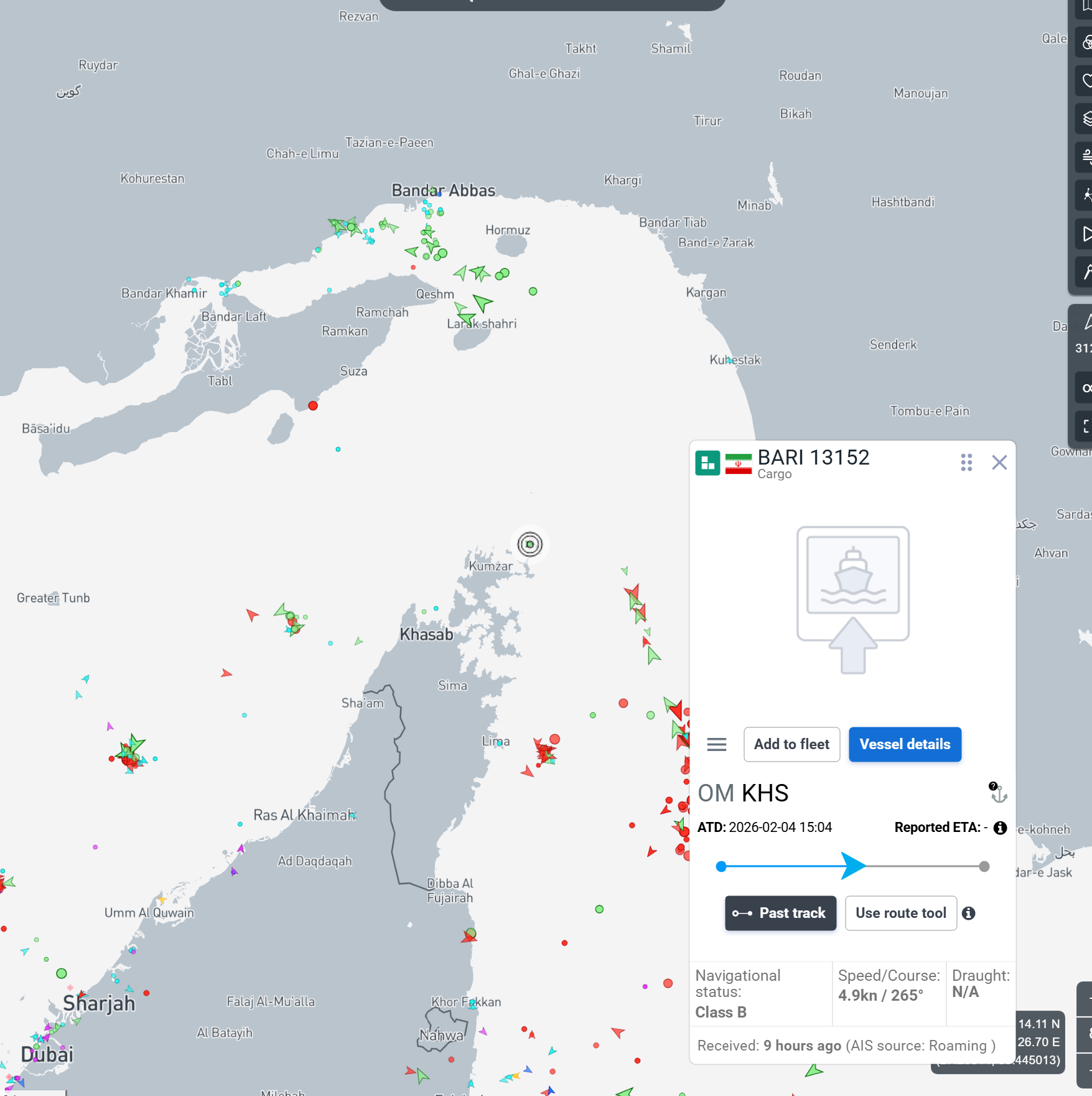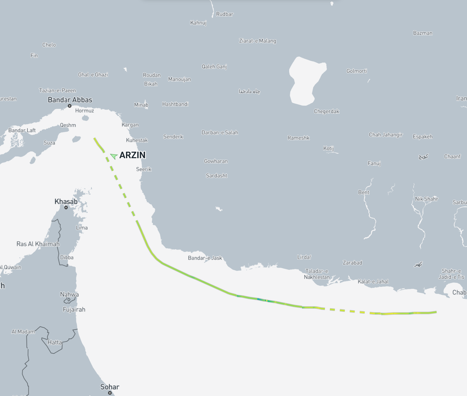 Meanwhile Iran-flagged ship ARZIN came in to Bandar Abbas from Malaysia today.
