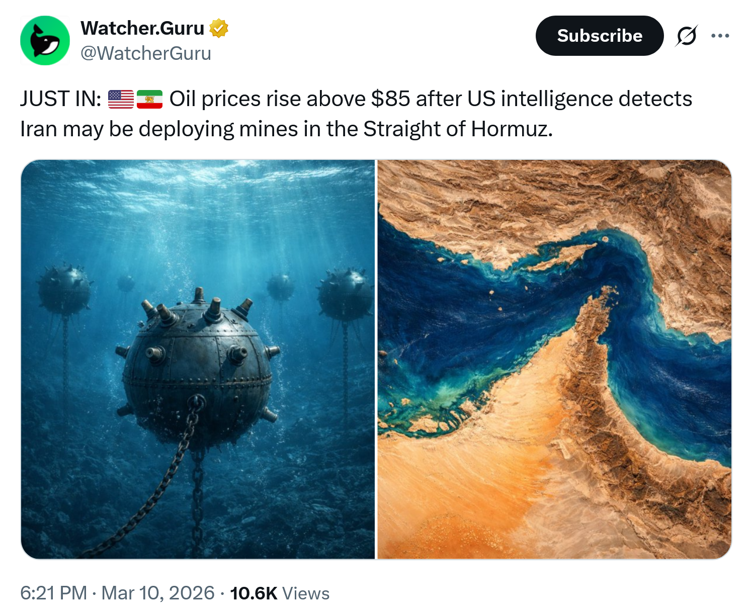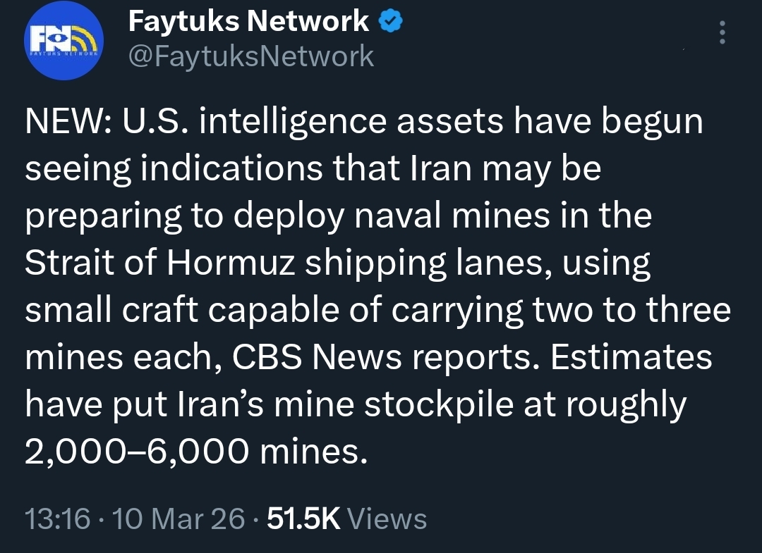 >>530396693> The mining of Hormuz is on the horizonIf the Iranians do this, shits gonna be fucked for real, even if they lose in the end. It’ll take way to long to take out all those mines to be economically feasible