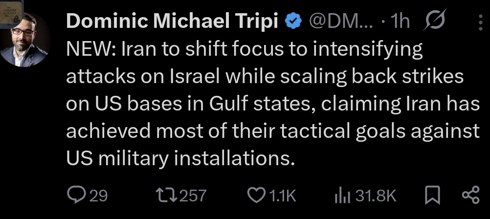 Posting Source for troops on the ground.Coming from a US senator.https://x.com/world_vibe_en/status/2031431925831717078