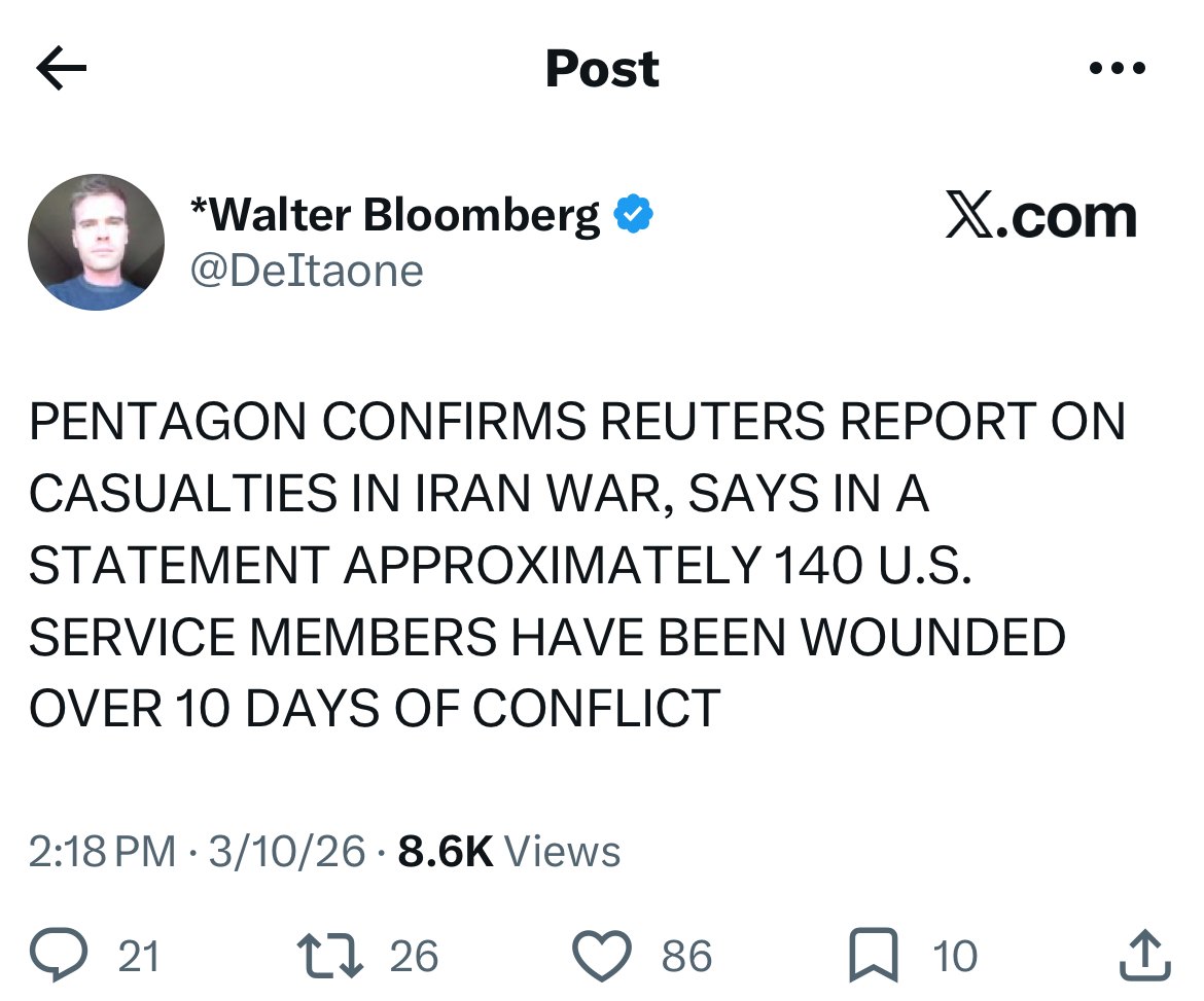 >>530394845wounded means they are brain dead on a ventilator in germany. we have been doing it since iraq, its well known we conceal combat injuries and deaths.