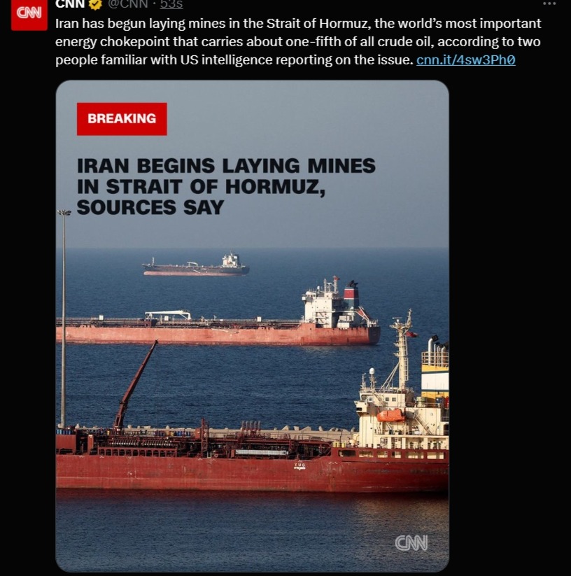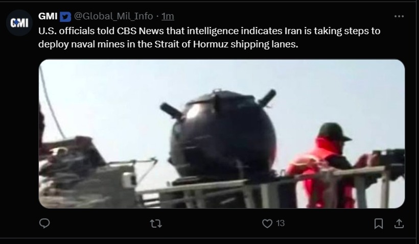 >>530400534So this implies the US doesn't know one way or the other if it's being mined, and it depends on Iran to de-mine if it is the case.Shouldn't the US have some aviation over the strait looking for mine-laying boats or subs?