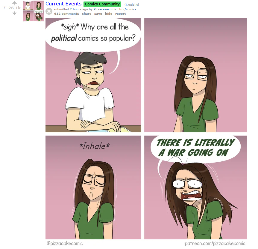 >>530396541>there's a war going on!!>you should be reading comics!!!i hate millennials