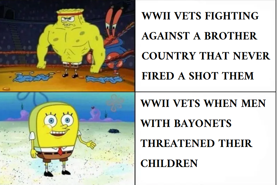 How dare you besmirch the name of the greatest generation EVAR! say youre sorry!