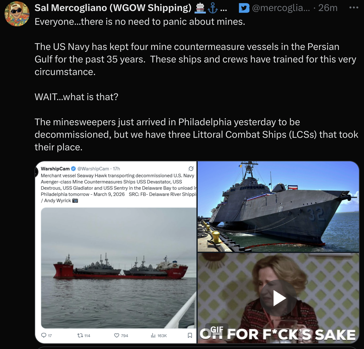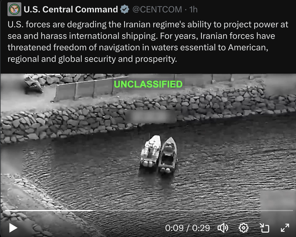 >>530402451>>530407479>They have just as many of these boatsbut are you sure though?https://x.com/centcom/status/2031456940090372370Can't really lay mines if everyone who leaves iranian shores gets detected by thermal visors and diesI think they will run out of volunteers quickly