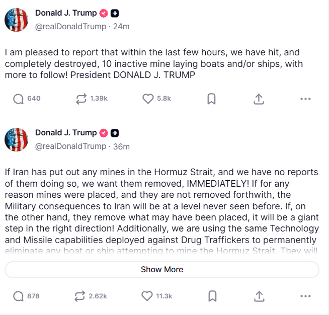>>530402451>they definitely haven’t mined the strait but YOU BETTER REMOVE THEM IMMEDIATELY or we’ll do what we have been doing>I know you didn’t give up already so threatening to do it even harder is bound to make you give up>ps please give up pls bro the stock market bro I need it over 50k or people ask me about the kid diddling