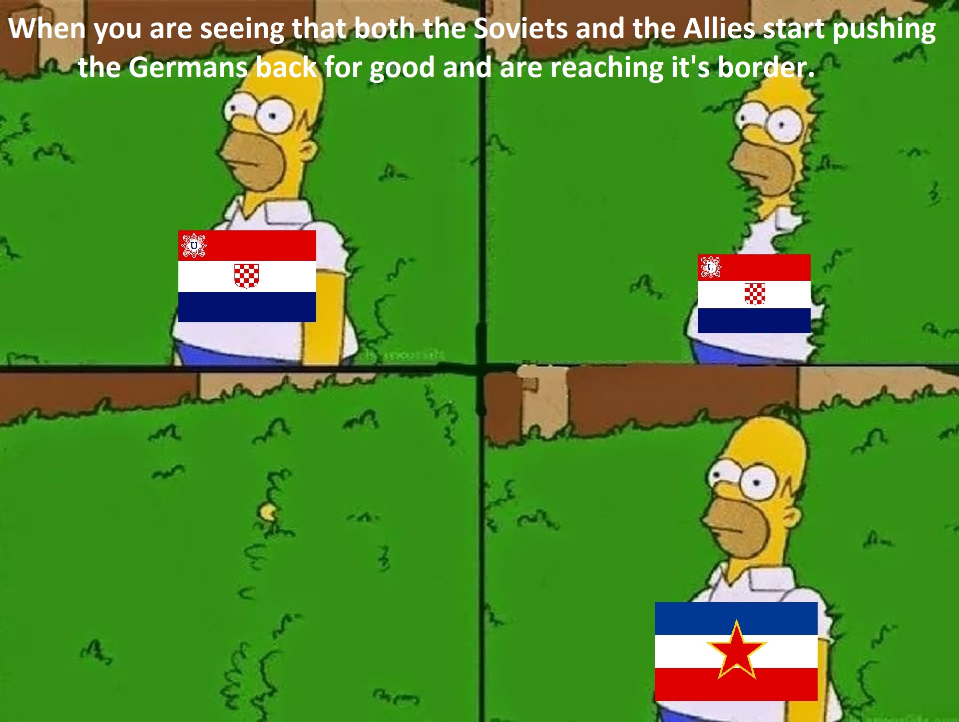 So ndh larps with germany and occupies and commits genocide in yugoslavis.Afterwards yugoslavis is formed with croatia in it againThen a few decades after they go uppity againMake it make sense