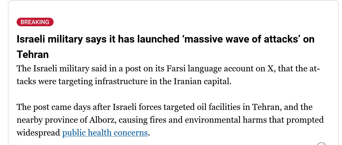 >Day 11 of "3 day special combat operation"Who actually thinks that things will end this week? Also:>Netanyahu saying he'll create "more chances" for the Iranian people to take controlThis faggot will try to bomb as much as possible before Trump calls this whole thing off. >>530407083>it wouldn't surprise me if China finally makes their move on TaiwanI would say the north gooks now have more of a chance to do some damage to the south gooks.