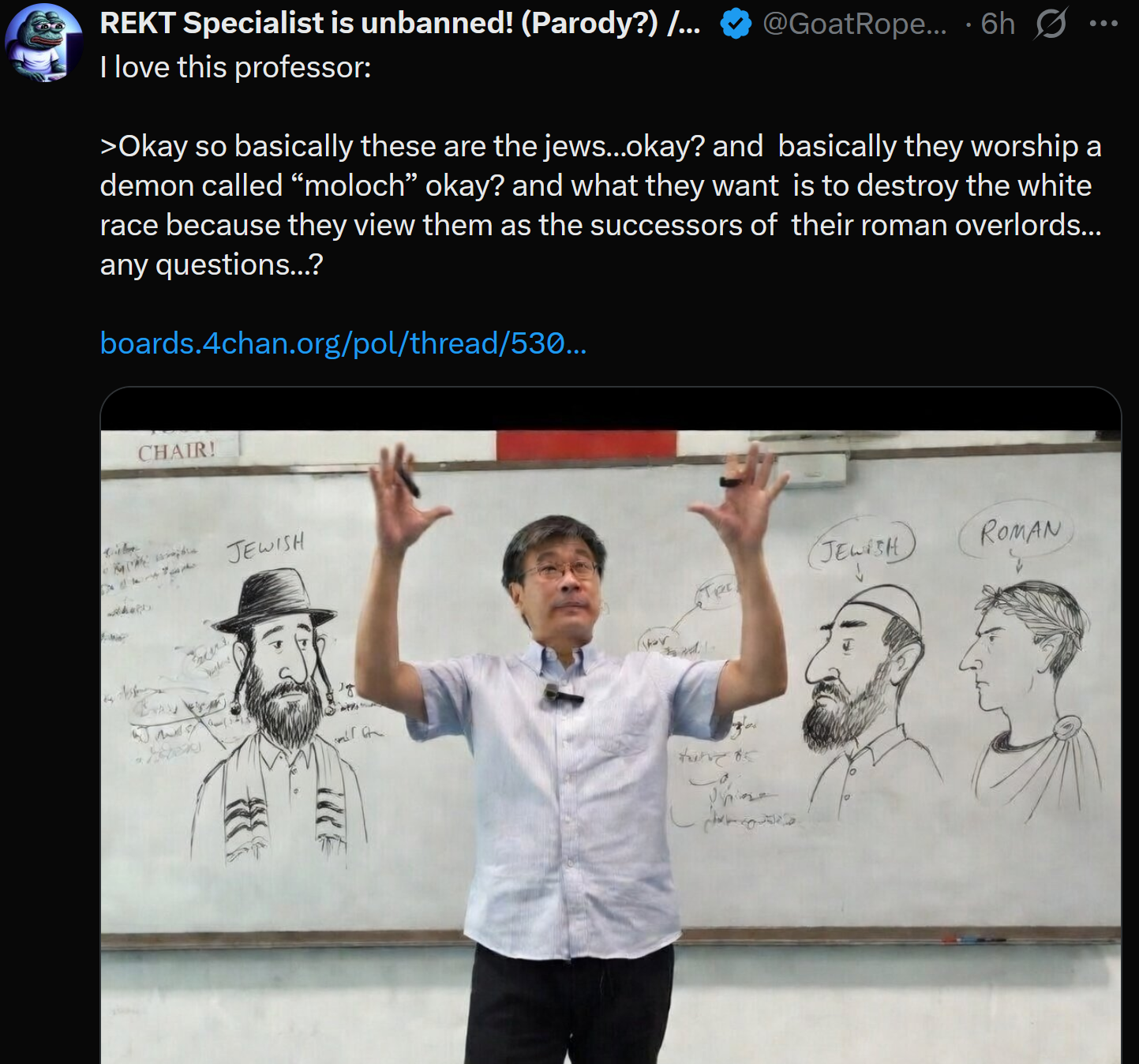 >>530413100Chink took too many redpills and now he's giving a bunch of high school kids lectures on the jews. He's basically pre-2016 /pol/ but Chinese.