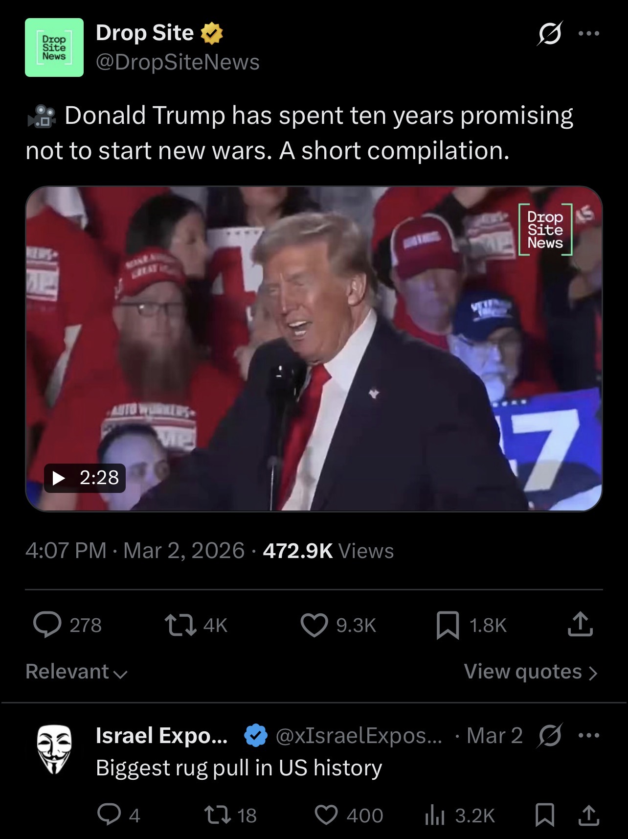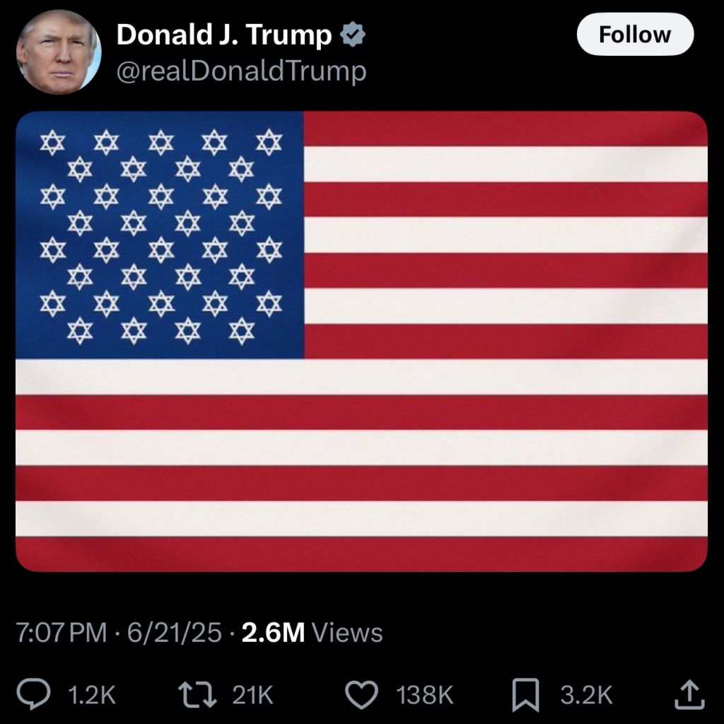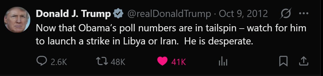 >We love fighting new wars for Israel, don’t we folks? Israel is the best. The very best. *YMCA song plays while Trump does a gay little dance*