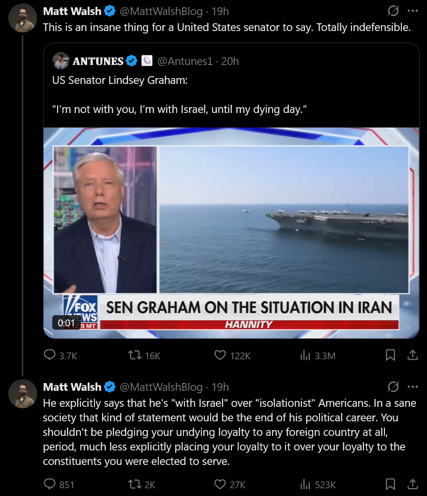 Remember that these are the people that you’re fighting for in Iran! Our greatest allies. We have to fight wars for Israel, we HAVE to.