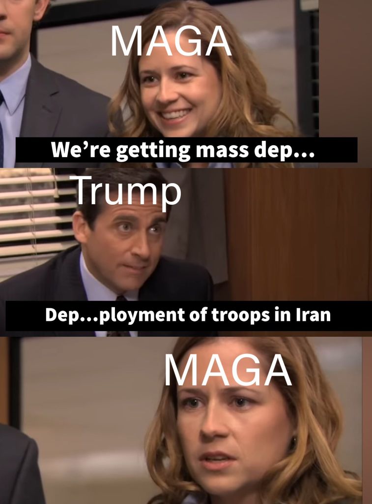 >I’m too old, but draft my zoomer grandkids to go fight for ISRAEL in Iran