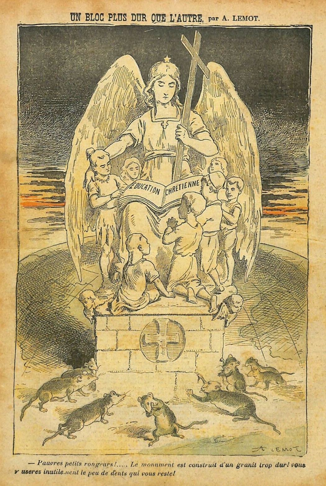 >>530411792What do you think of Freemasons, fake French?Pic. [The Left, Jews & Masons] Against Christian Education by Achille Lemot 1904Text: “Each/One block is harder than the other.” [destroying Christian education]“Poor little rodents!..... The monument is built of very strong granite! In vain you will wear out the few teeth that you have left!”Depicted is the face of Gauche who was a Freemason.