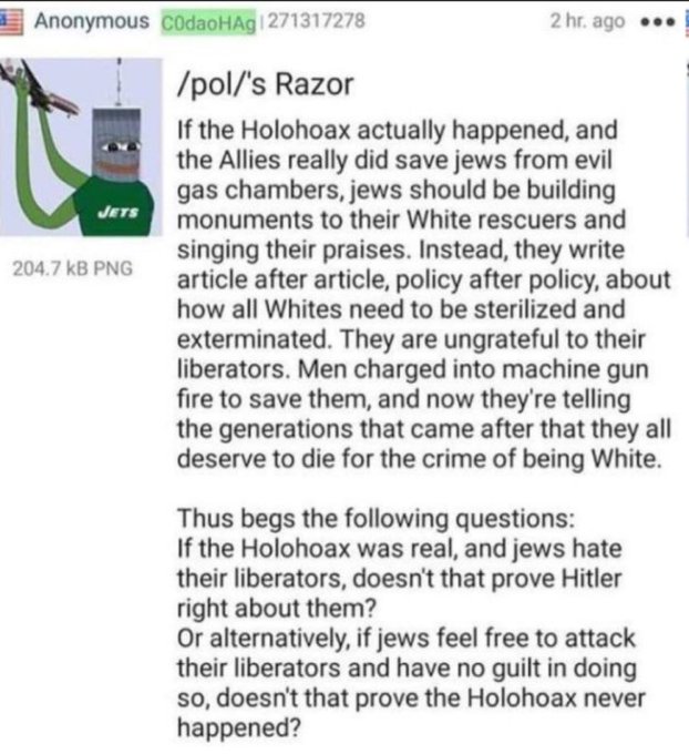 Lmao you’re on 4chan, stfu. The rights fatal flaw (other than facts and historical context) is that they’re just such fucking contrarian shits.