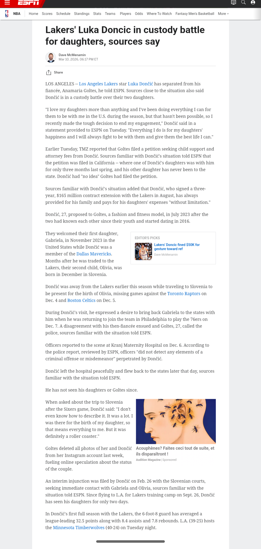 Not even divorce, they weren't married. Probably forum shopping and Doncic has the misfortune to work in California so she can easily file there. She won't get alimony I guess but the child support will be so lavish she'll live like a little princess. For at least 18 years, possibly longer than Doncic's NBA career. And maybe much longer, thru college.She gets custody, he gets the bills. And maybe he's in an even weaker position because they were not married when they had the kids, regarding custody.