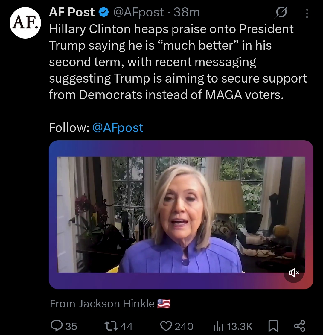 >>530433671Yeah, of course she likes his 2nd term, because it's been an absolute fucking disaster compared to his first.