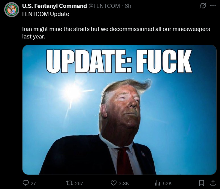 >>530439390And apparently the reason why it took so long to appoint Mojtaba's possibly dead corpse to the position of Supreme Leader is because not everyone wanted to go along with the Weekend at Bernie's plan. On the bright side, having a corpse for a Supreme Leader means they can avoid the terrible optics of their leaders being killed and replaced multiple times in the span of a single week.
