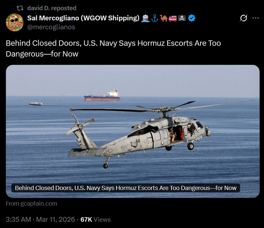 >Behind Closed Doors, U.S. Navy Says Hormuz Escorts Are Too Dangerous—for NowLOLOLOLOL