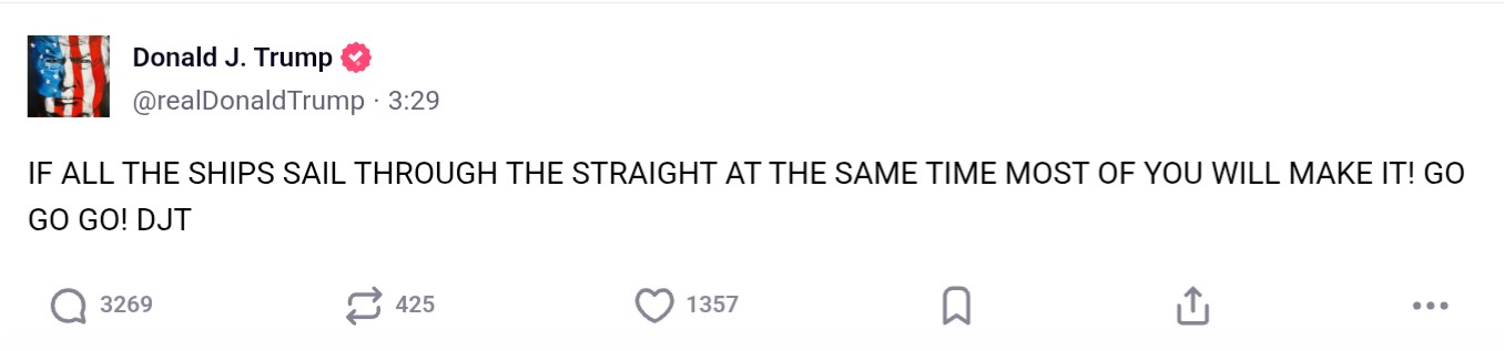 >These ships should go through the Strait of Hormuz and show some guts, there’s nothing to be afraid of…