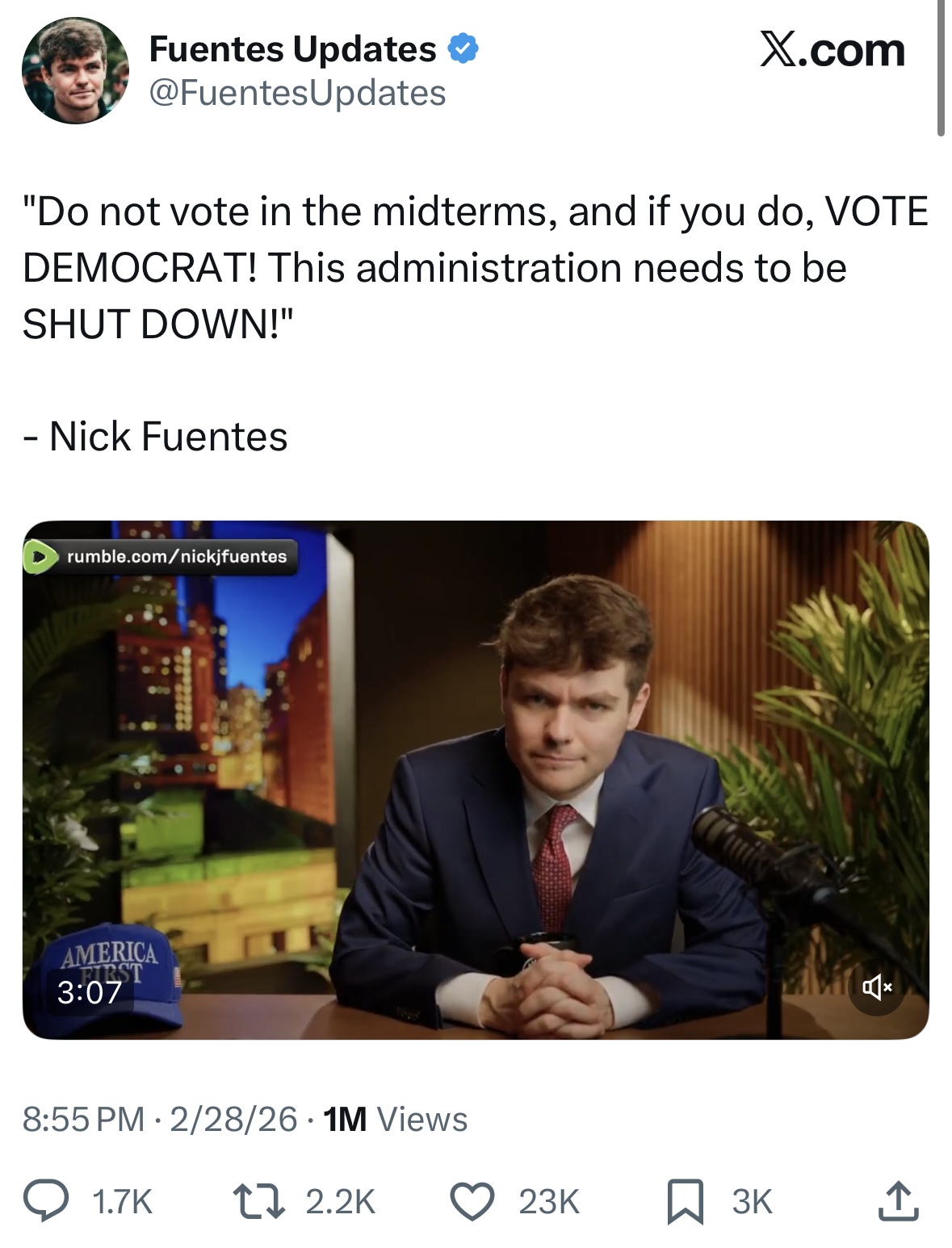 >>530447884Notice how he never talks about how we can't afford shit. Nick Fuentes doesn't care about us.