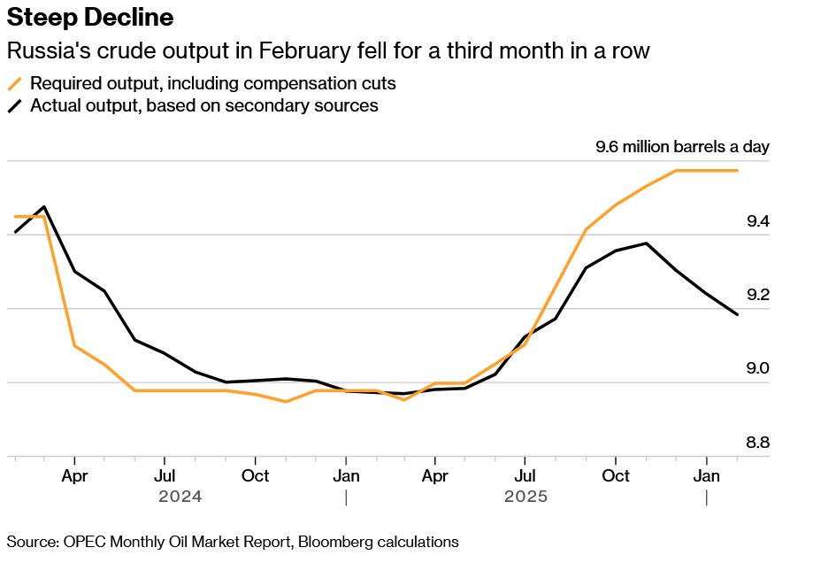 Pidor oil production is throttled somehow. They can't produce as much as they used to even if they wanted to. This is still a lot of oil but it's far from the halcyon days of 10M+ where they were racing and beating the Saudis.There will be an oil dividend for pidors this month but it won't be a lot. Price and quantity for a sustained time are needed to take full advantage of high oil prices.