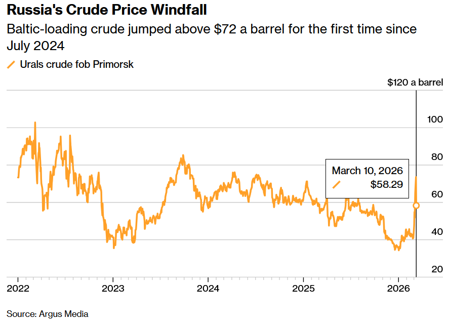 Bloomberg citing Argus data says Urals crude is already back below $60/bbl. Still a fair bit above the $40 mark it was hovering round since November though.