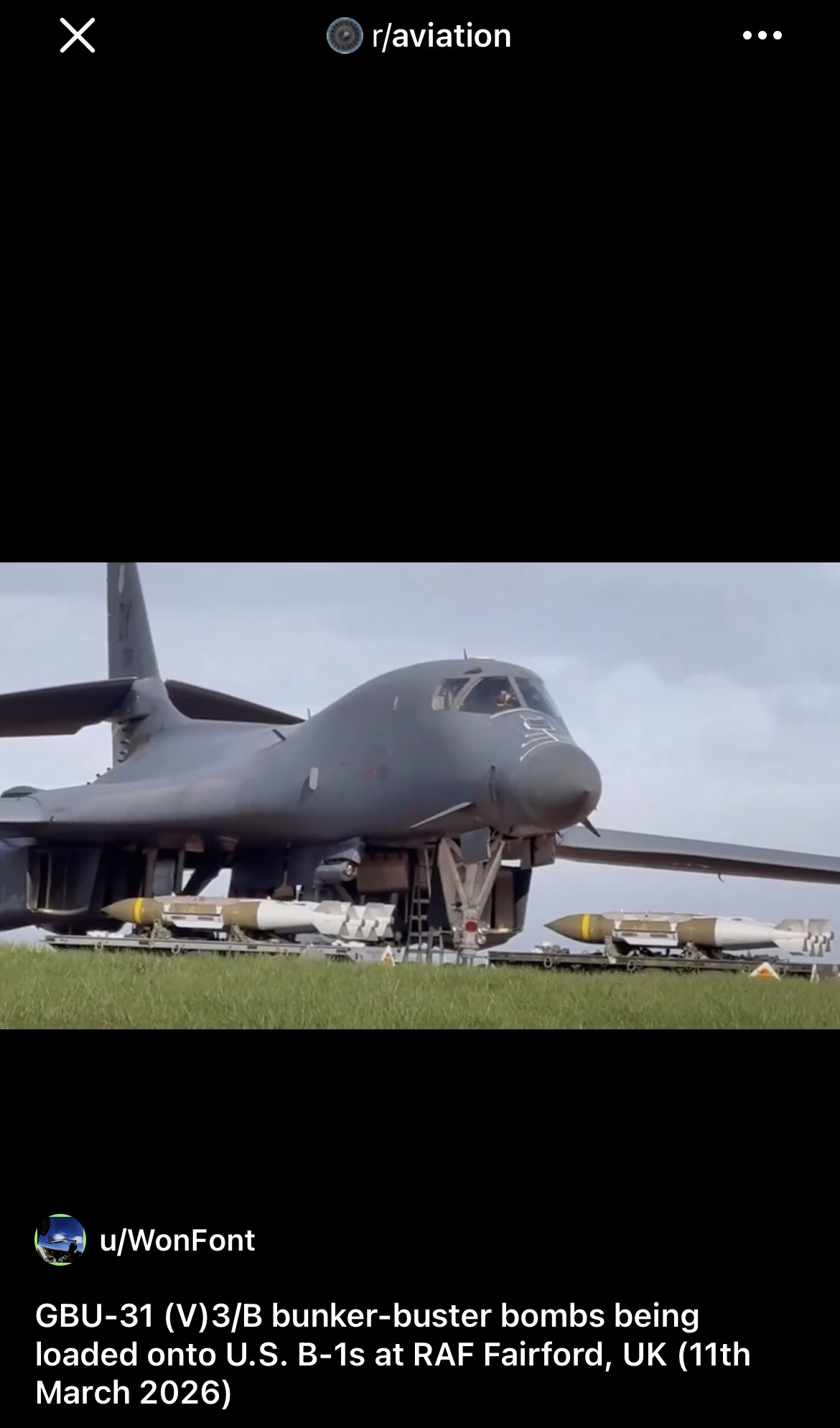 >More Kino InboundGBU-31 (V)3/B bunker-buster bombs being loaded onto B-1s at RAF Fairford, UK (11th March 2026)