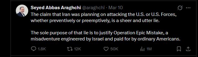 >>530498621>They have yet to make public appearance.aragchi at least is busy aurafarming on xitter, teasing the epstein class. dude has gained 150k followers or so since the start of the war, it's nuts
