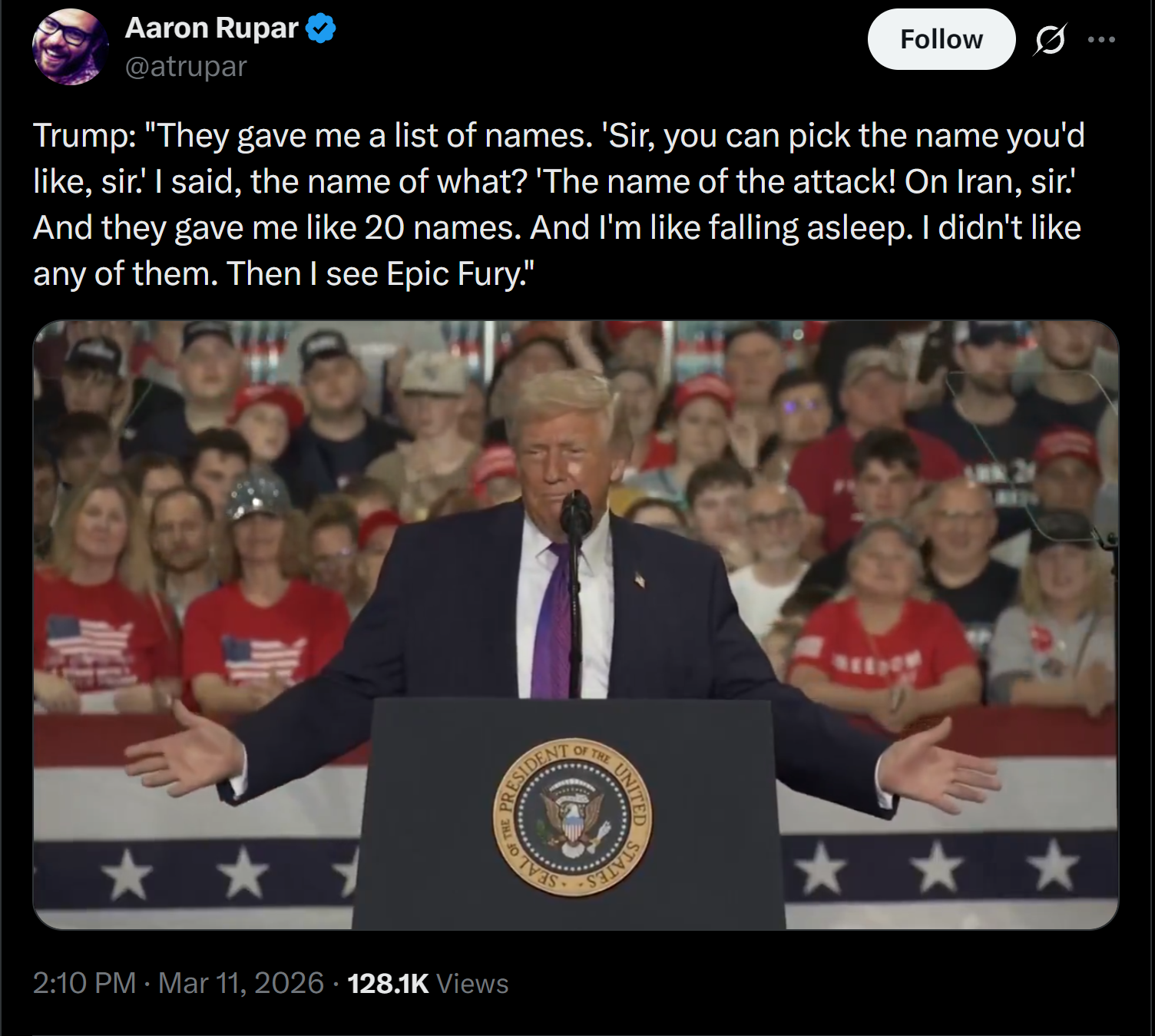 daily reminder that iran is winning and trump has chosen to deal with this by going senile