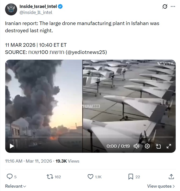 >>530501177The US is using their own OWA UAVs on Iran. https://files.catbox.moe/8yfmzw.mp4>Surreal scenes out of Tehran tonight. Israeli suicide drones are striking Basij militia checkpoints. People are screaming out of their windows “death to the dictator (Mojtaba Khamenei)” and “death to the Basij militia”