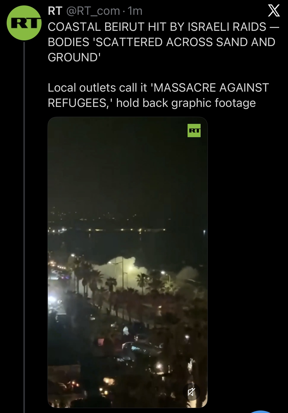 >an Israeli airstrike struck ordinary traffic in Ramlet al-Baida, Beirut, leaving many dead.