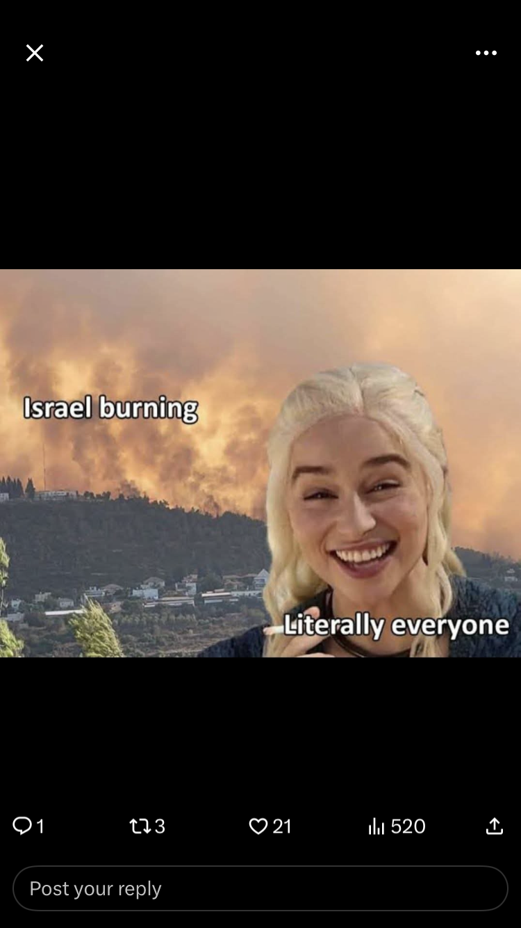 >>530503483love to see it bro, I saw that Israel was literally precision striking IRGC in Tehran earlier, they're scared shitless lmao