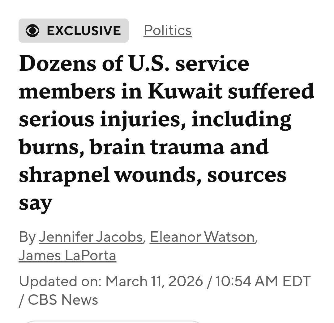 The March 1st Kuwait drone strike was far worse than reported.Dozens of U.S. servicemen suffered serious injuries; shrapnel wounds and brain trauma, beyond the 6 killed.The Pentagon has been managing the casualty numbers carefully since day one.