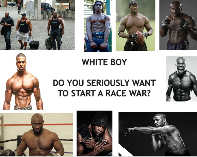 >>530554967*are half white and can more easily assimilate to white America>bitch we don’t care about that shit we black I was saying that to witey who thinks just cuse your farm boys are tall and fought in Vietnam and shit. You are all going to be singing cumbaya once you kick out out,We are not as resentful and insecure as black people either.Least half of us.