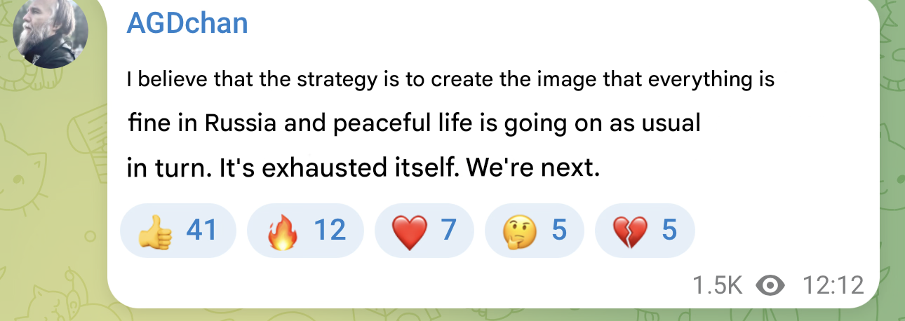 >>530541441western russian supporters trying their best to keep painting the pro-russian narrative rose tinted while the actual russian doomposting never be unsad