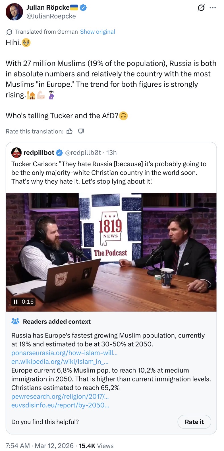 >>530535747Sweden at 10% muslim in 20 years goodRussia at 20% muslim in 400 years badNot a hard concept.