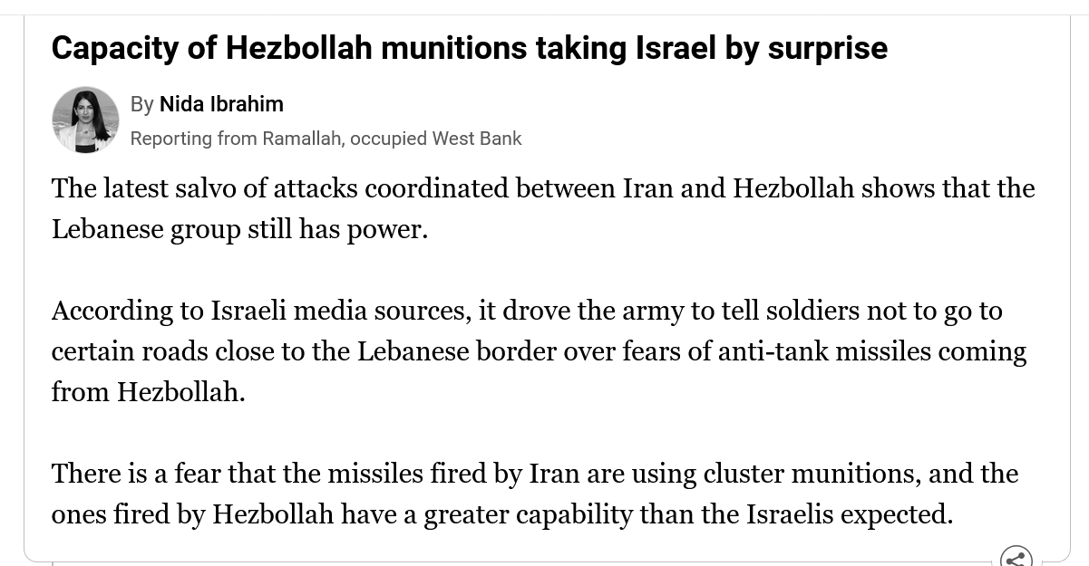 >>530544532>Muh destroyed chain of command can be taken off the shill topic list too.As for that, did Anon note Iranian C3I is apparently still intact enough to coordinate missile strike timing with Hezbollah?
