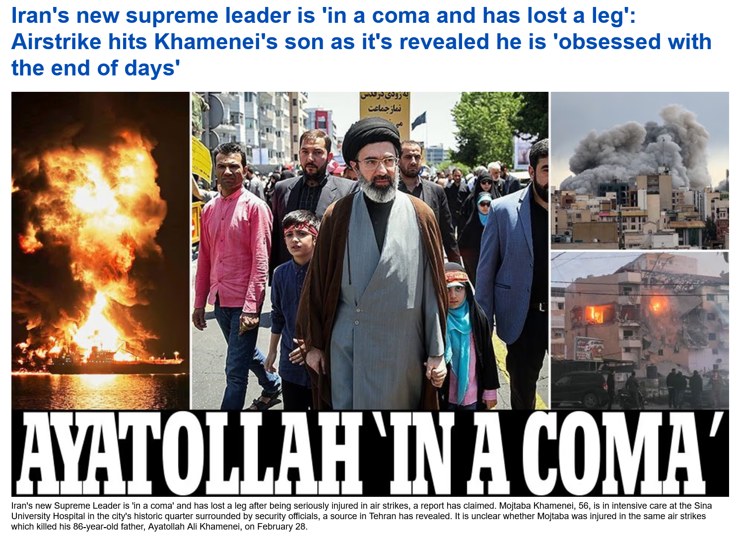 >Iran's new supreme leader is 'in a coma and has lost a leg': Airstrike hits Khamenei's son