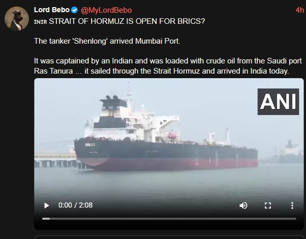 >>530540518>Indian source says Iran to allow India-flagged tankers through Hormuz as first tanker arrivers - ReutersI’ll add it if I bake next