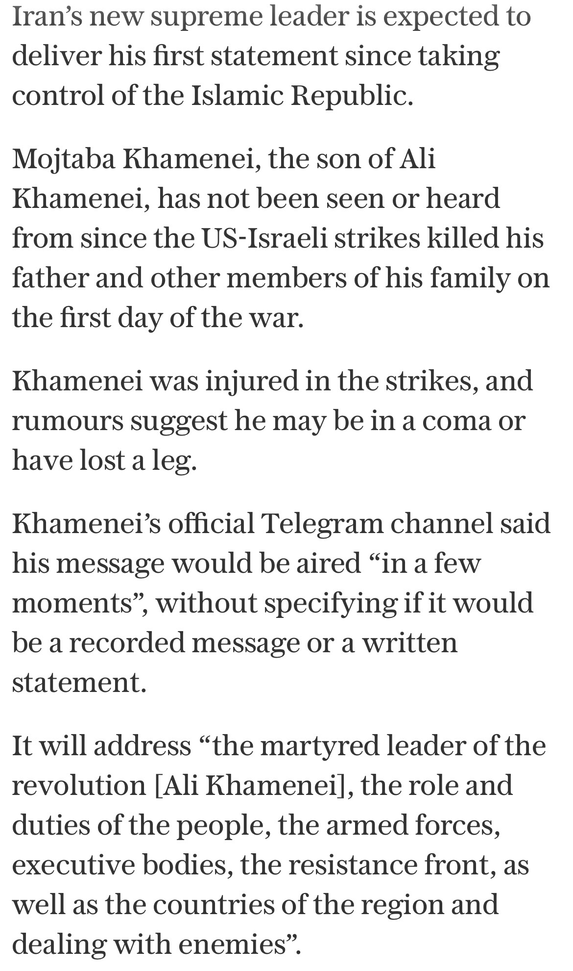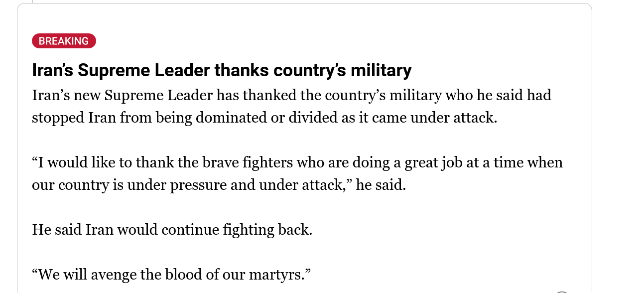 >BIG BREAKINGIrans new supreme leader to deliver first message.