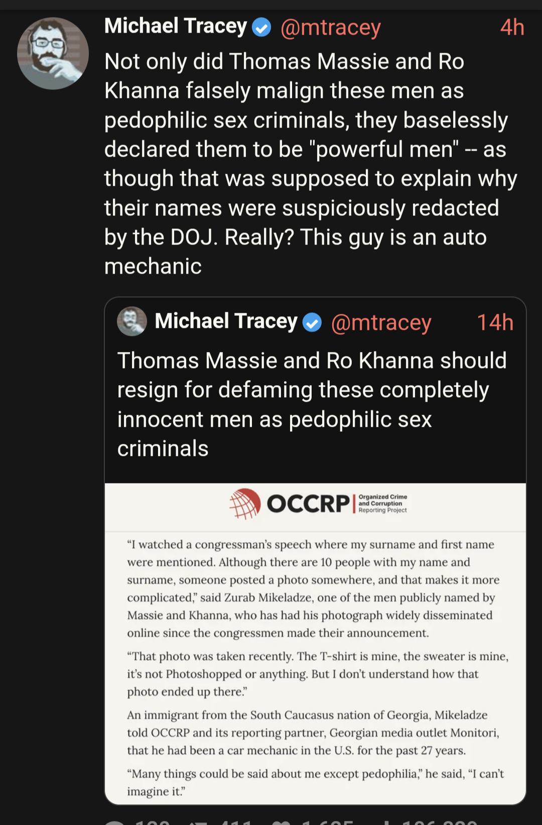 >>530552341>no u >my name is Michael Tracey >I don't believe anything I can't see >if you don't show me Epstein puting his crooked dick in a child I won't believe it>no no I don't care about the 1001 proofs of crimes >I want CP picture or it never happened Tracey isn really making the argument he think he is he should have stayed "retired," if you ask dude is digging his own grave faster than a tranny reaching 30