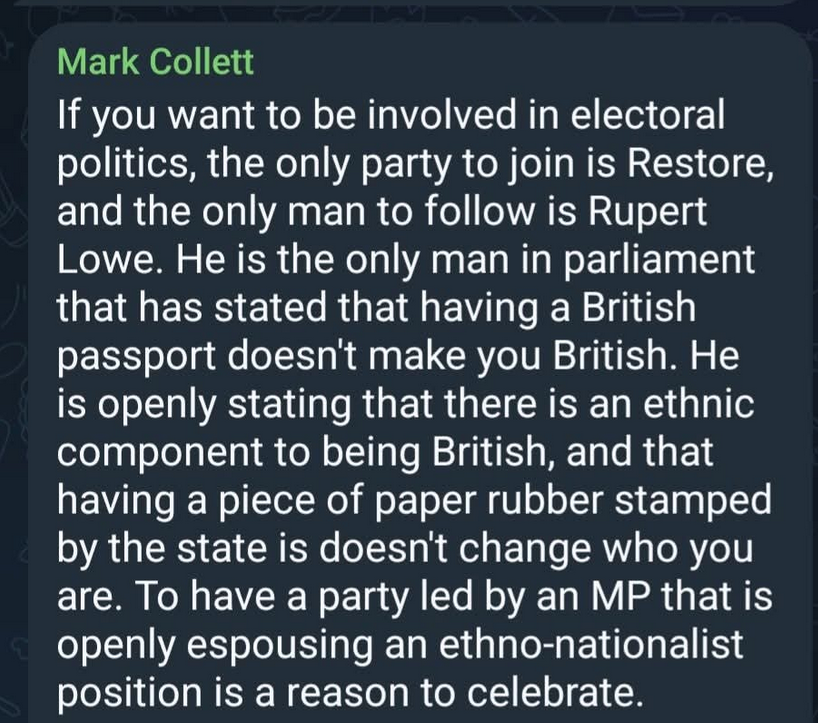 >Security forces get two vetoes over UK electoral candidates - first within the party through vetting, second through their legal authority over UK media. The UK is only nominally an electoral democracy.>In some cases, three, when vetting gets sourced to SPLC-type "NGOs" like Hope Not Hate.>have any parties done that?>Funny you should ask; it was Reform again. Quite a few candidates entirely booted just before last GE based on articles by HNH, later on Tice (then Chairman) admitted to outsourcing vetting to them wholesale.