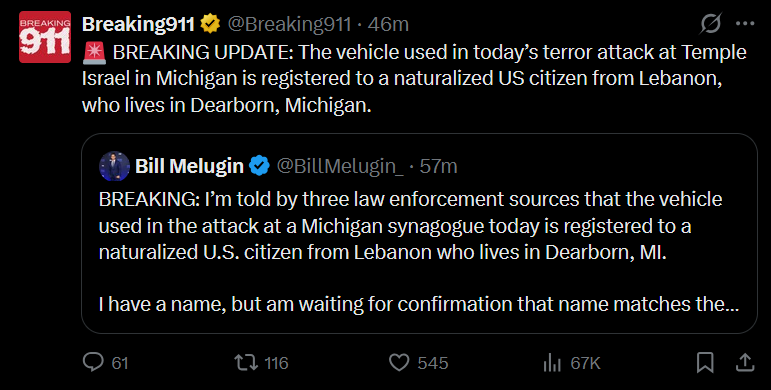 >>530577751the university attack was a naturalized citizen from senegal who was already convicted of providing support to ISIS, the synagogue attack was a naturalized citizen from lebanon