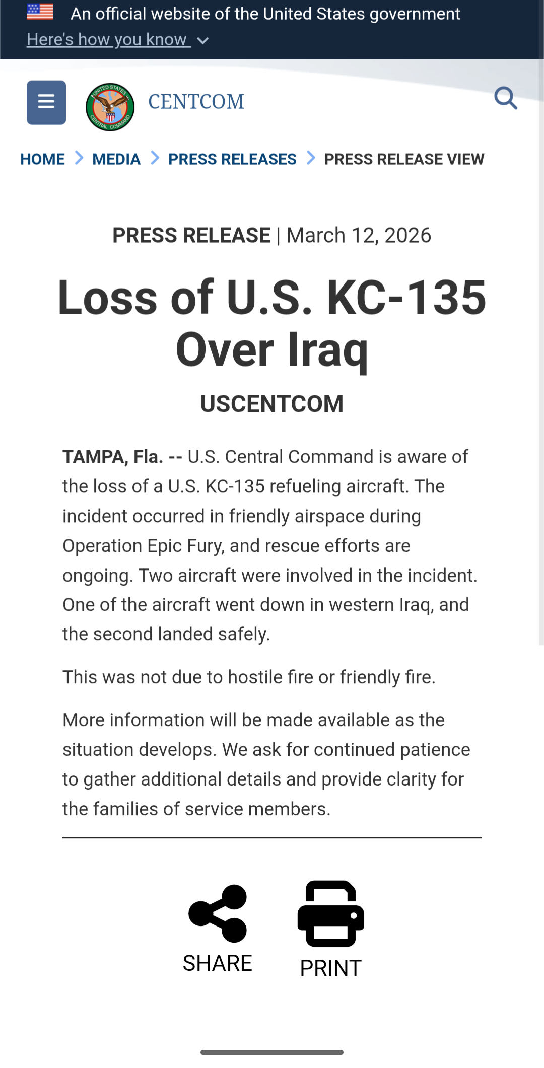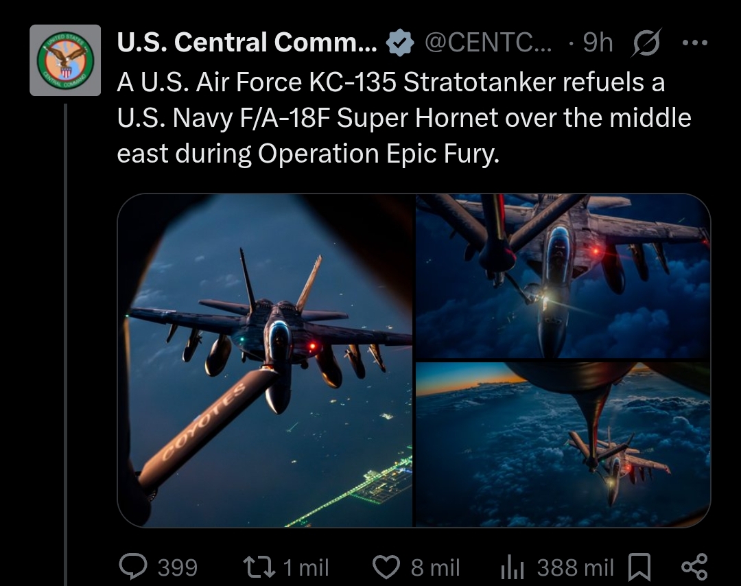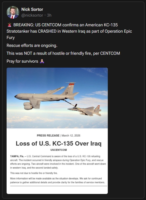 Iran takes responsibility for downing the American KC-135 refueling aircraftSpokesperson for the Central Khatam al-Anbiya HQ:An American refueling aircraft was hit by air defense systems in western Iraq, crashed, and all its crew members were killed