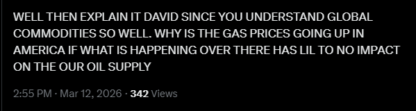There are millions of MAGA boomers out there who aren't terminally online and have no idea what's going on in the world having to soon pay double at the pump with absolutely no idea why. Fun times ahead
