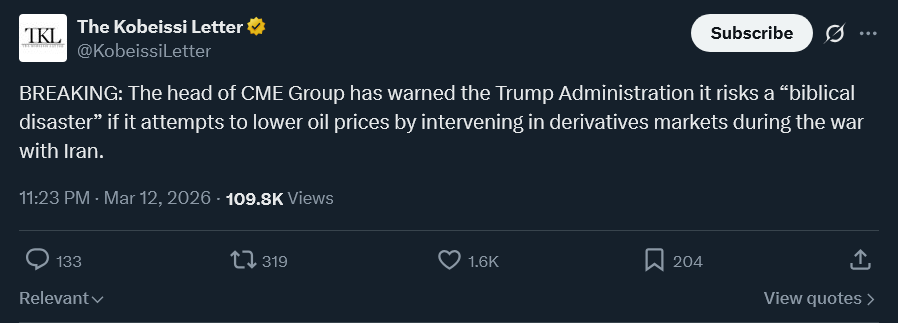 >>530657078yea, manipulating the market. already been confirmed the treausry has been shorting futureshttps://www.reuters.com/business/energy/exchanges-oppose-potential-us-treasury-intervention-oil-futures-market-2026-03-12/