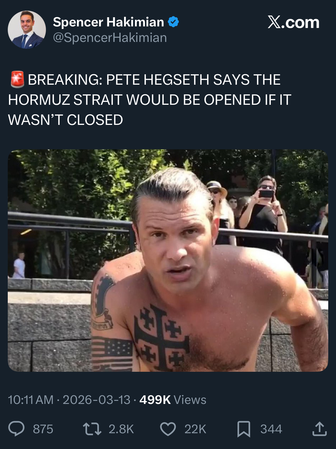 "We're on plan to defeat, destroy, disable all of their meaningful military capabilities at a pace the world has never seen before." - heggsethcall me goy for believing the u.s. government