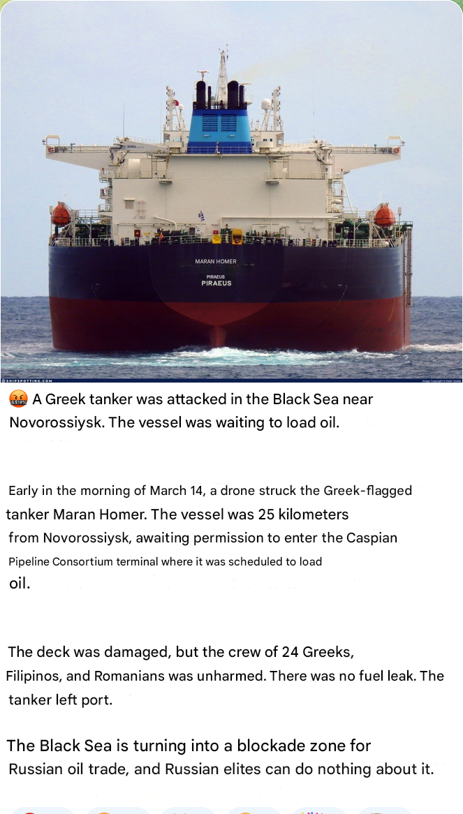 >The Black Sea is turning into a blockade zone for Russian oil trade, and Russian elites can do nothing about it.what an unforeseen event, but Russian elites definitely could just stop invading