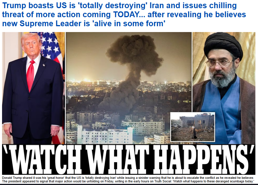>President Trump via Truth Social:>Iran had plans of taking over the entire Middle East, and completely obliterating Israel. >JUST LIKE IRAN ITSELF, THOSE PLANS ARE NOW DEAD!He's malding again